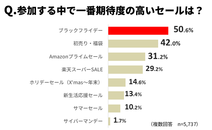 最も期待度が高いセールは「ブラックフライデー」次いで「初売り・福袋」、大手ECサイトセール