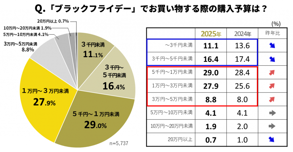 予算のボリュームゾーンは1万円~3万円。昨年より購入予算が増加傾向