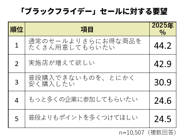 「お得な商品をたくさん用意してほしい」ブラックフライデーに対する大きな期待