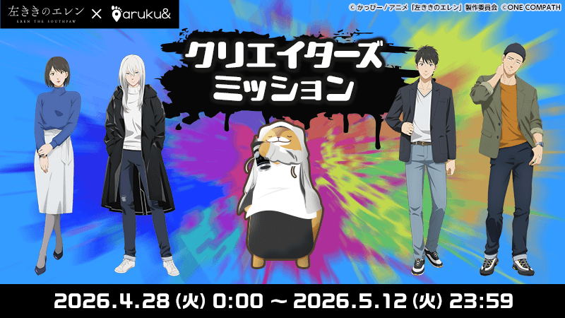 TOPPANグループの株式会社ONE COMPATH(ワン・コンパス)が運営するウォーキングアプリ「aruku&(あるくと)」は、TVアニメ「左ききのエレン」とのコラボレーション企画として、「クリエイターズミッション」を2026年4月28日(火)より開催します。